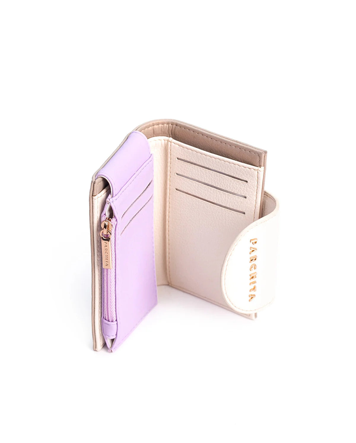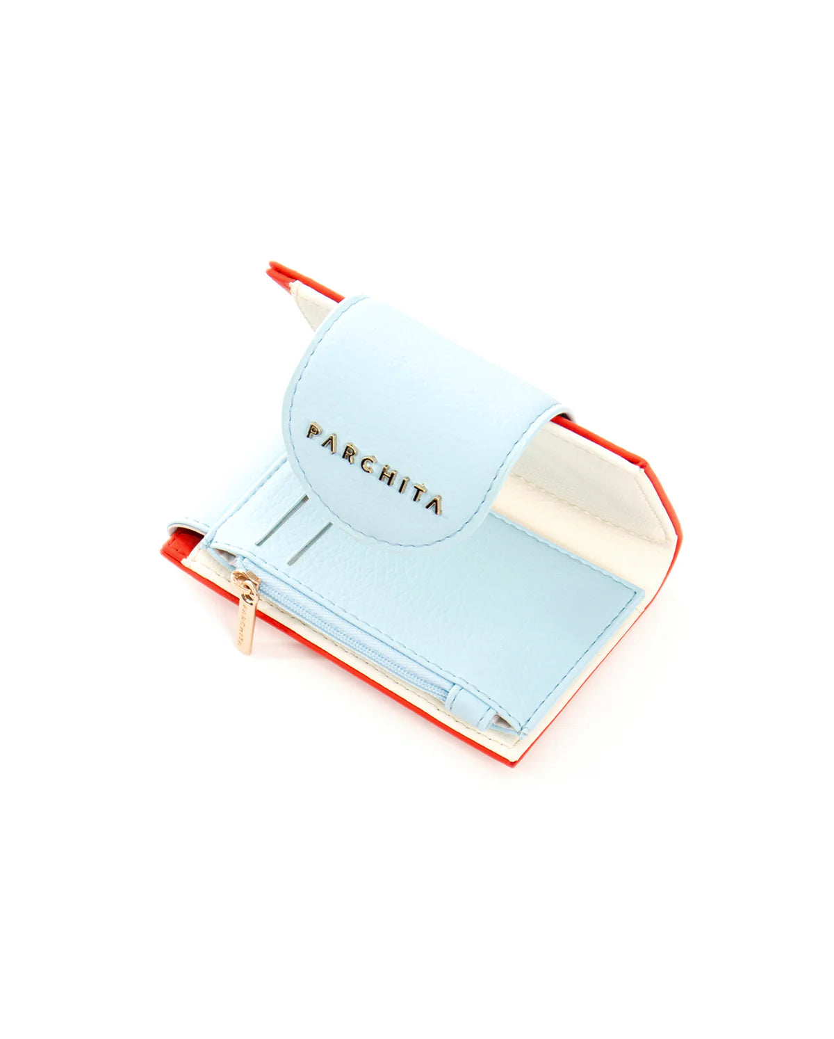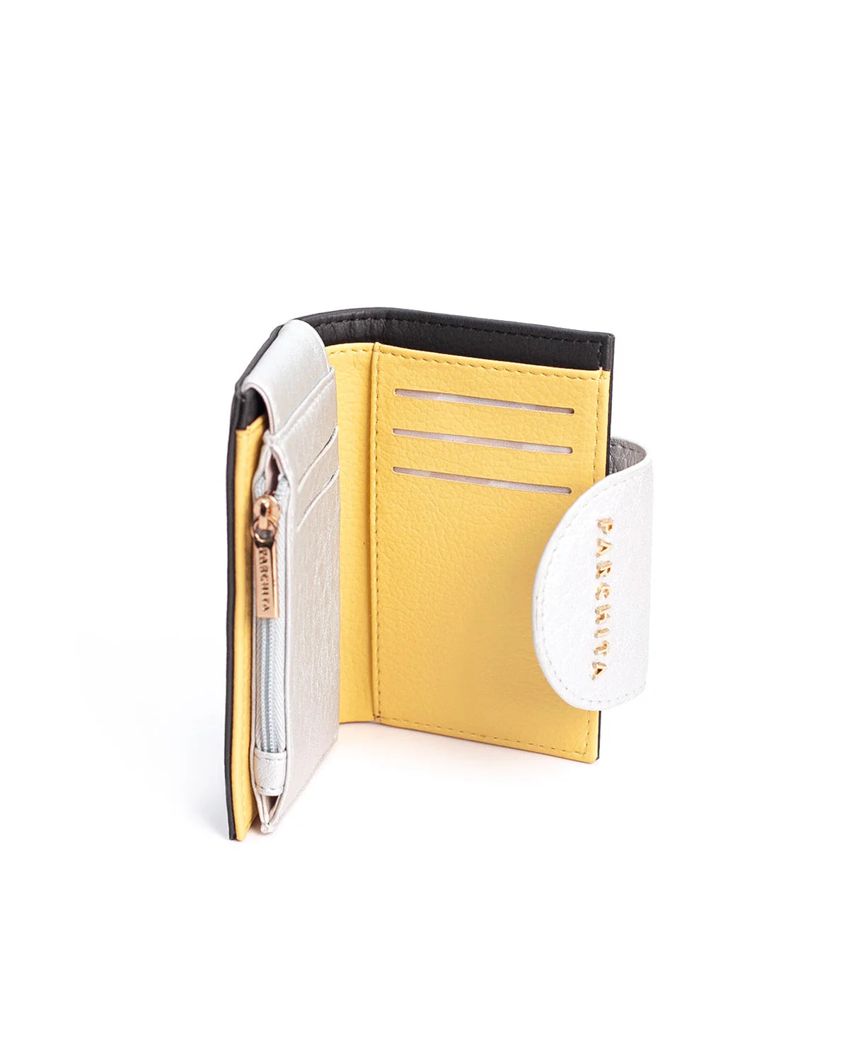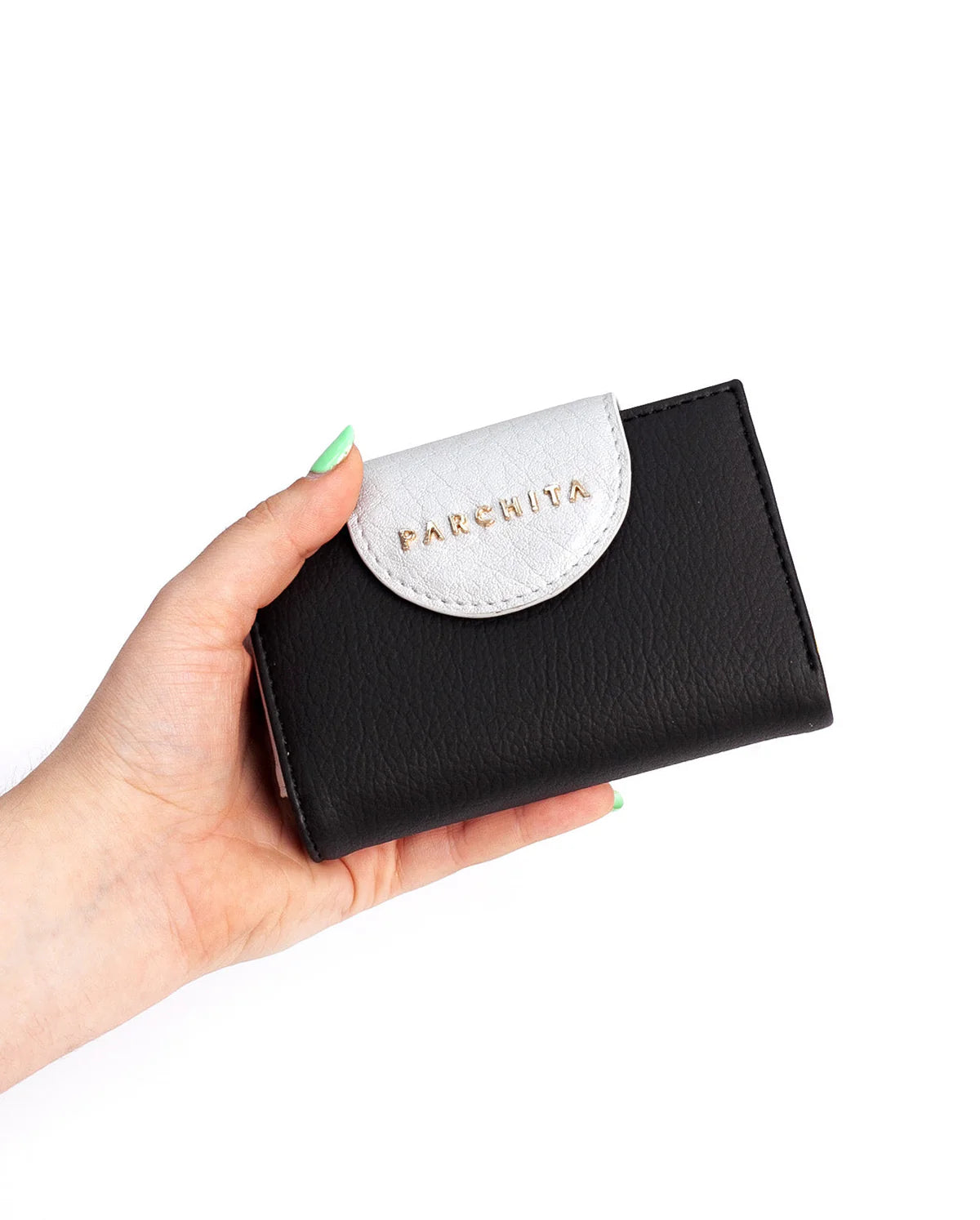 La billetera mediana perfecta para organizar tu efectivo y tarjetas con estilo. Con solapa dura y cierre, ofrece seis prácticas ranuras para tarjetas y un compartimento para billetes. También incluye un monedero con cremallera y dos tarjeteros adicionales para mayor funcionalidad. Fabricada en PVC y forrada con Typhoon®, esta billetera presenta finos herrajes dorados y un nuevo diseño de letras individuales "Parchita" que la hace única y elegante. ¡Ideal para llevar todos tus imprescindibles con clase!