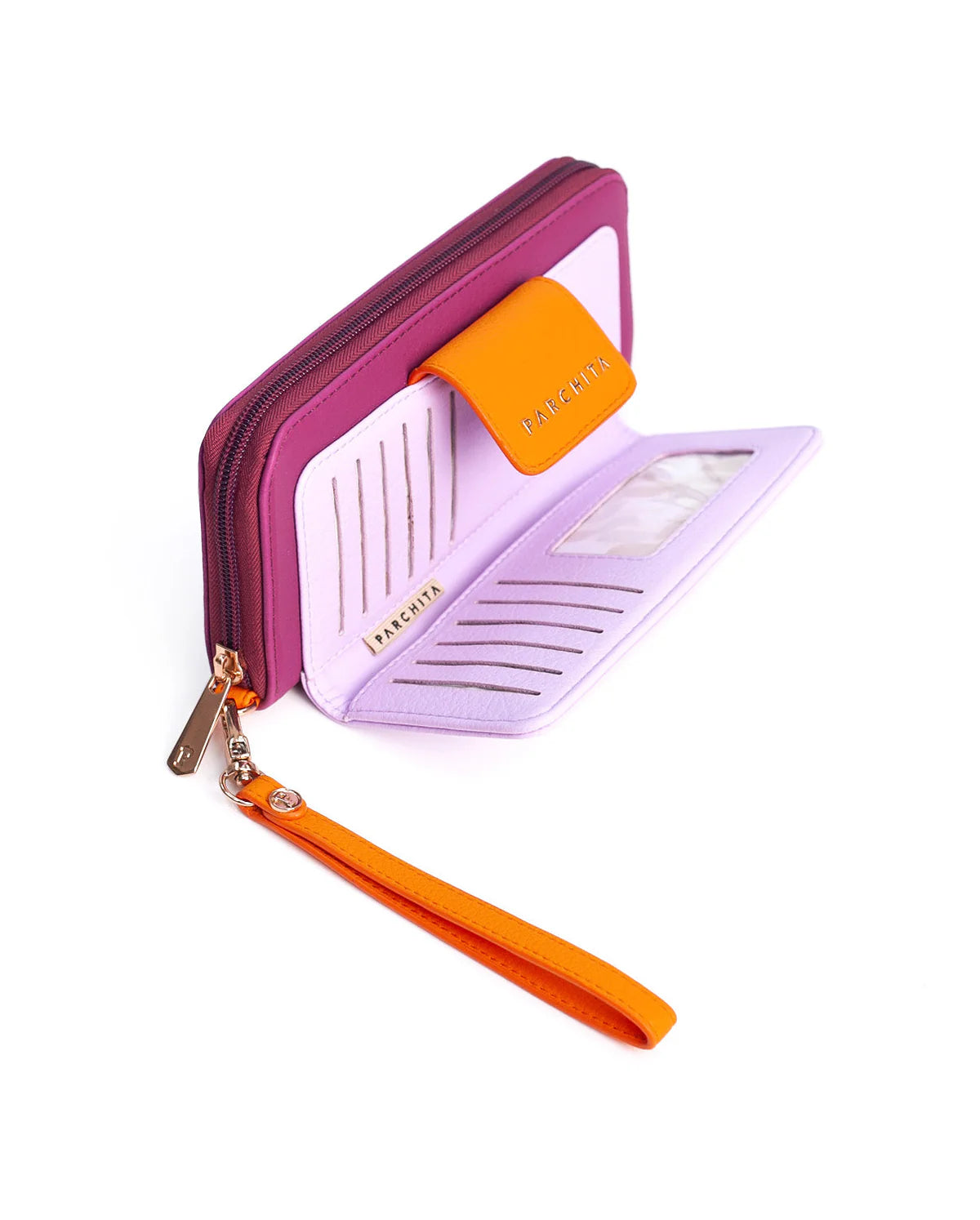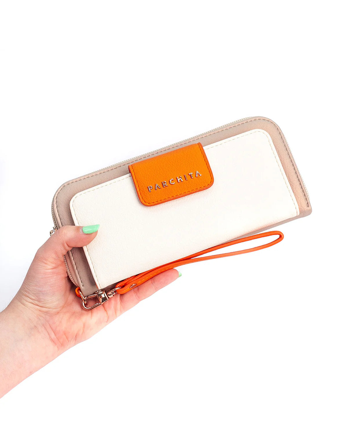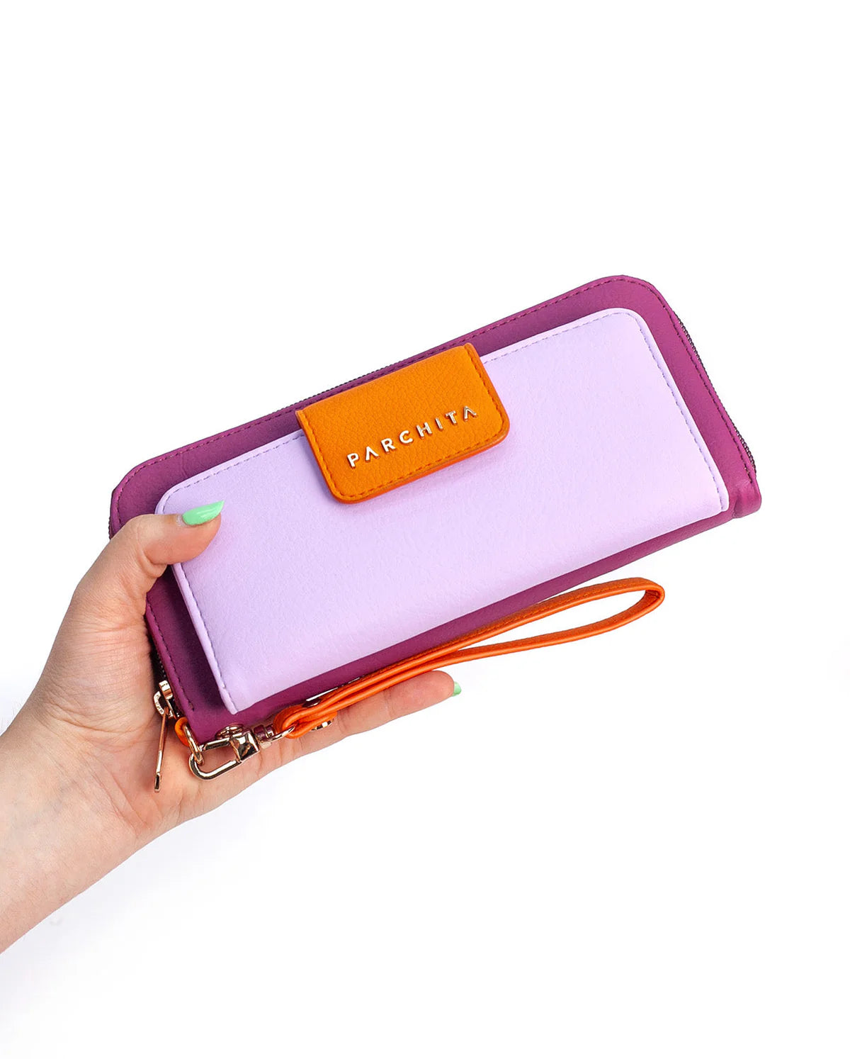 Esta billetera plegable alargada combina estilo y funcionalidad a la perfección. Con cierre, solapa y botón, ofrece múltiples bolsillos y ranuras para tarjetas para mantener todo organizado. También incluye un compartimento para billetes y un monedero con cierre, todo en un diseño compacto y práctico. Su correa de muñeca con mosquetón facilita su transporte, mientras que los elegantes herrajes dorados le dan un toque de lujo. ¡Una billetera versátil y moderna para tu día a día!