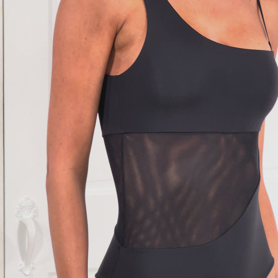 Body esencial elaborado en tela suave doble y tul. Su diseño cuenta con una sola manga y tira tiny removible y ajustable para mayor comodidad.