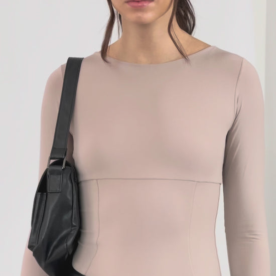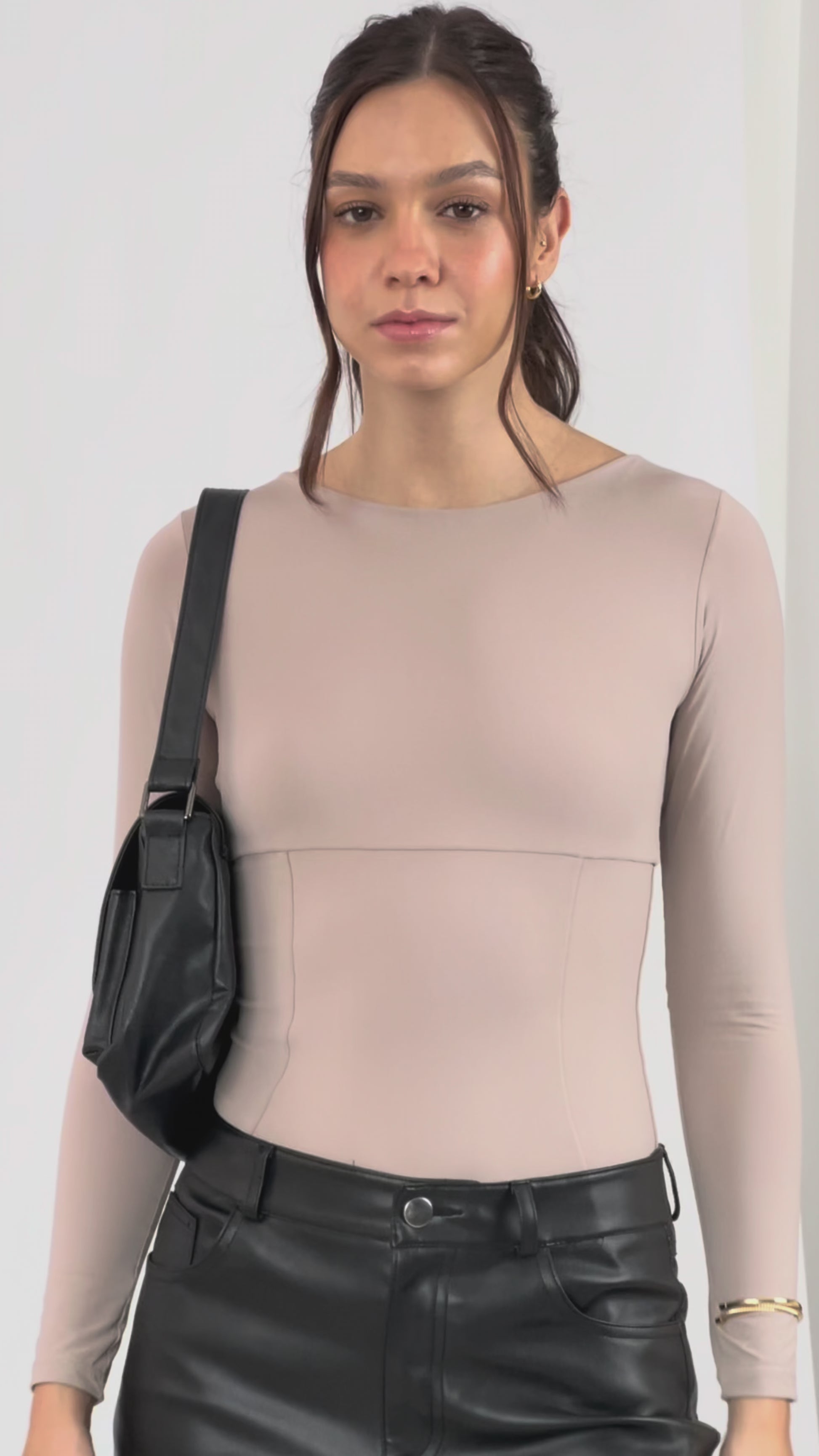 Body manga larga elaborado en doble tela suave que se ajusta perfecto a tu silueta, con cuello redondo y cortes que hacen que la cintura se vea más pequeña y estilizada. Costuras invisibles lo que hace que el tacto de nuestras prendas se sienta como una segunda piel.