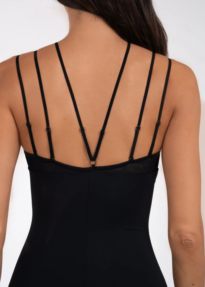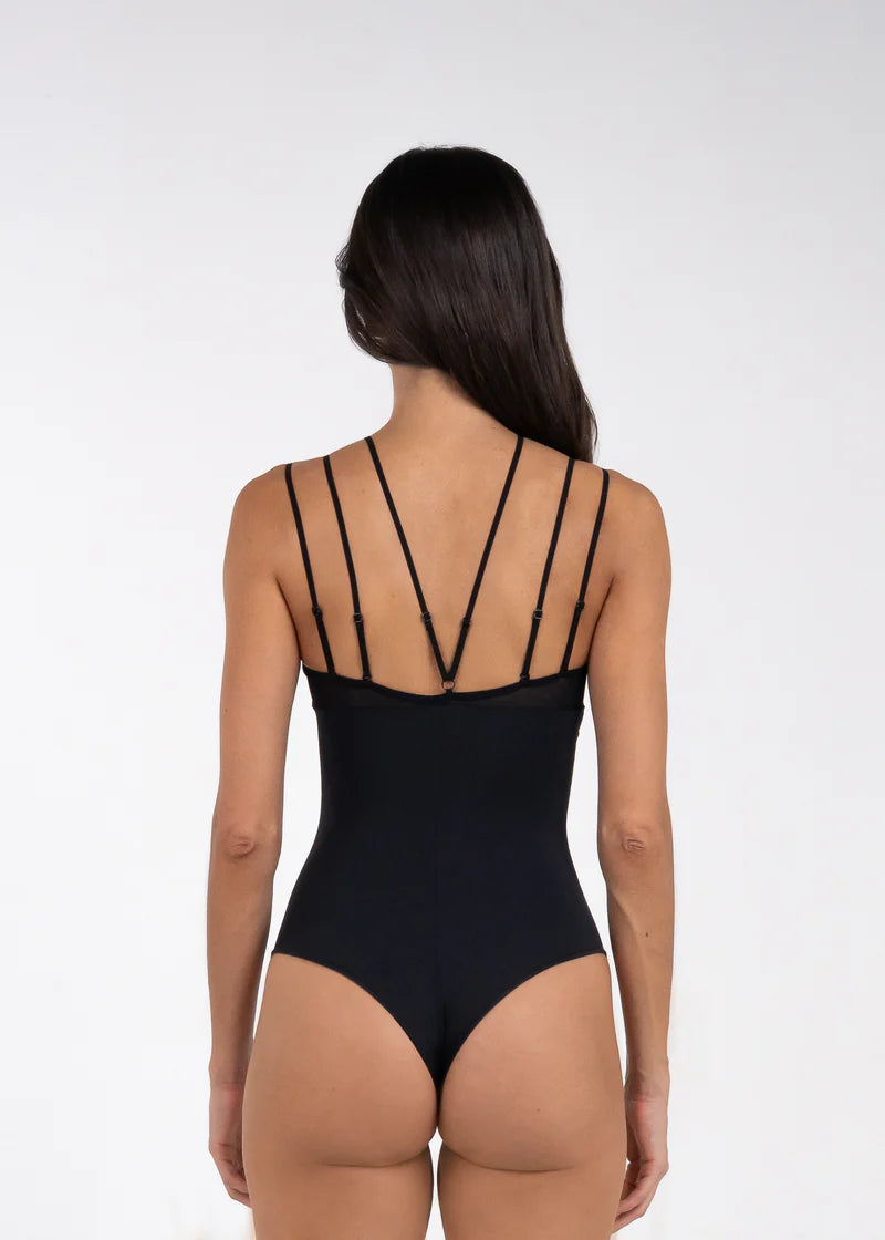 Body esencial y atemporal elaborado en tela suave y tul. Tiene copas internas removibles y elásticos tiny en el diseño de su escote. Sus cargaderas ajustables, hacen que se adapte perfectamente al cuerpo. Es un prenda muy cómoda y sensual, completamente exteriorizable por sus detalles.