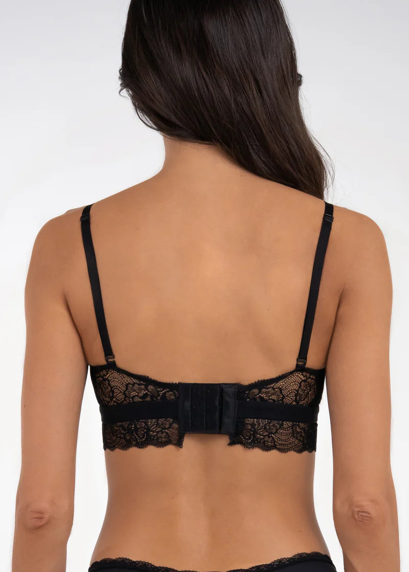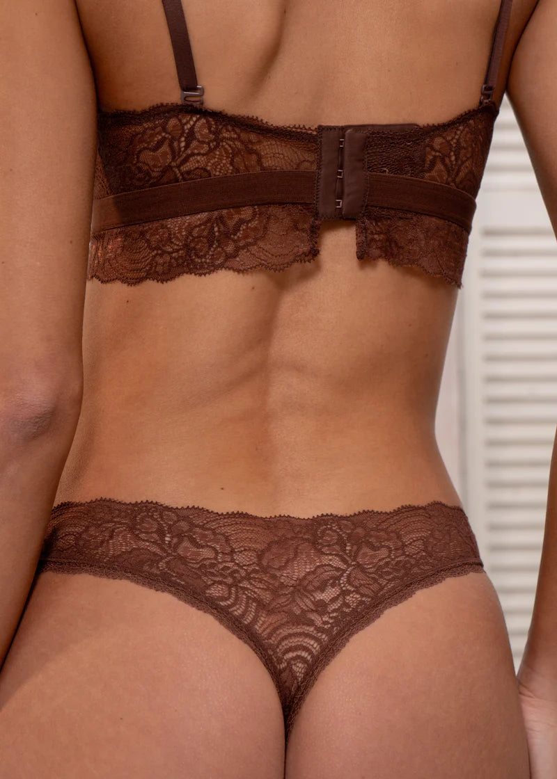 Brasier romántico elaborado en encaje y con copas forradas en licra y copa interna en espuma removible. Excelente cobertura y soporte en busto. Espalda elaborada 100% en encaje. Cargaderas medianas (13 mm) para la talla L.