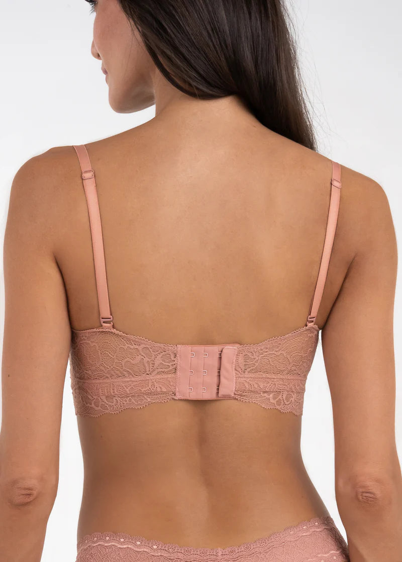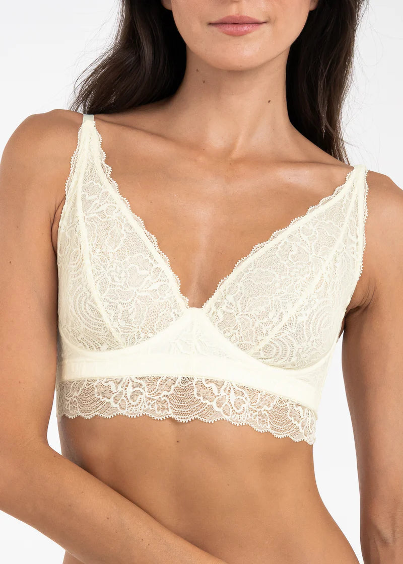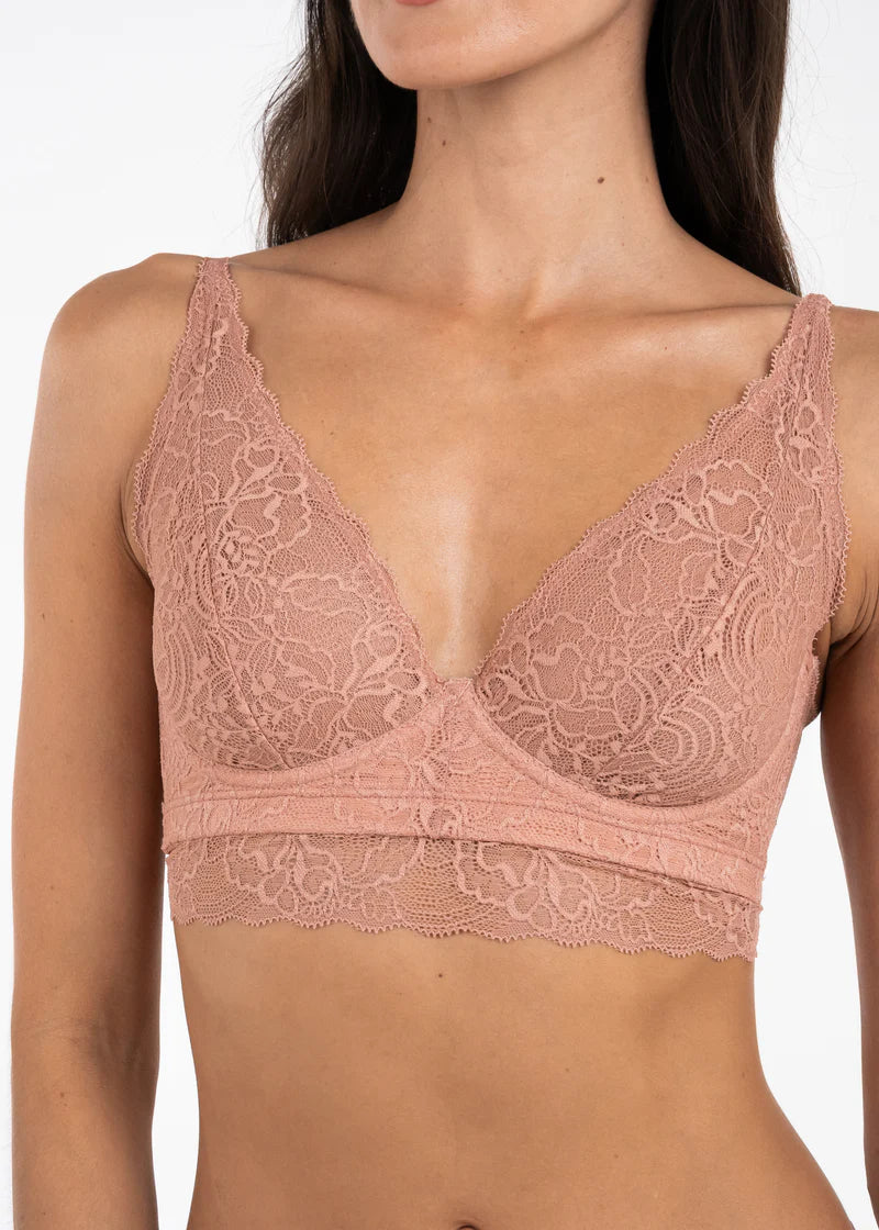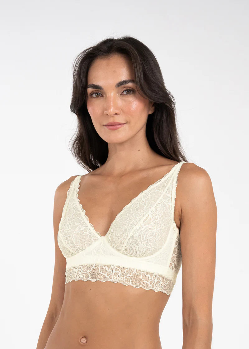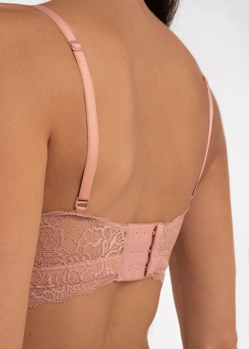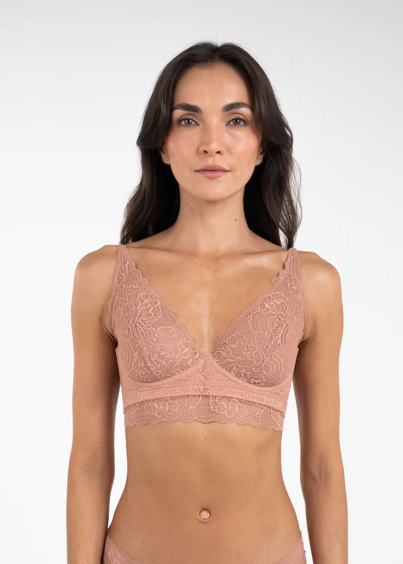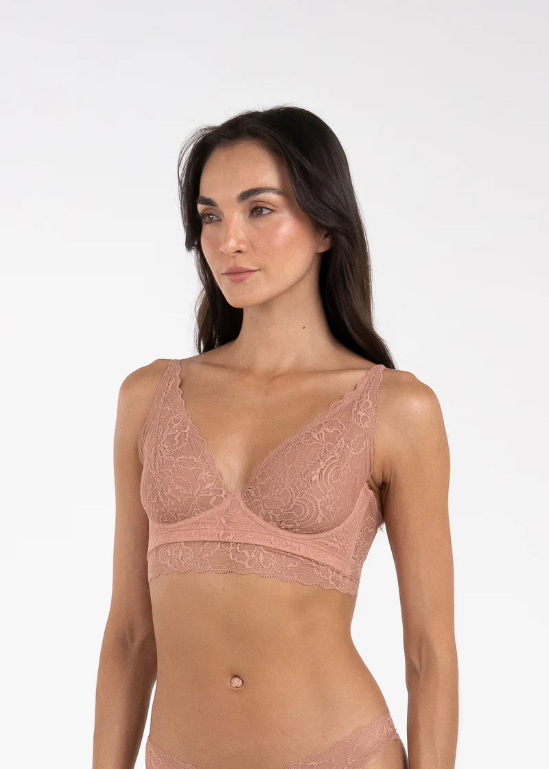 Brasier de varilla con copa de encaje hasta el hombro forrada en tul, excelente cobertura en busto y muy buen soporte en contorno. Accesorio de encaje en espalda. Cargaderas medianas para tallas S y M (13 mm) y anchas para las tallas L y XL (2 cms).