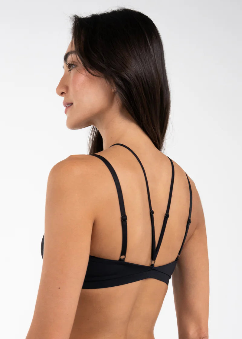 Top elaborado en tela suave con copas internas removibles. Tiene recogido en copa y TIRAS EXTERIORIZABLES que van desde el escote hasta la espalda que lo hacen una prenda versátil. Recomendado por su cobertura y soporte.